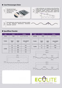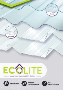 ATAP ECOLITE adalah produk atap transparan gelombang yang ramah lingkungan karena terbuat dari daur ulang botol PET (Polyethylene Terephthalate). Atap ini dirancang ekonomis, kuat, ringan, dan dilengkapi dengan perlindungan sinar UV untuk memberikan pencahayaan alami maksimal serta melindungi dari panas matahari. Atap Ecolite sangat cocok untuk kebutuhan pencahayaan alami di area rumah seperti kanopi, jemuran, atau taman.